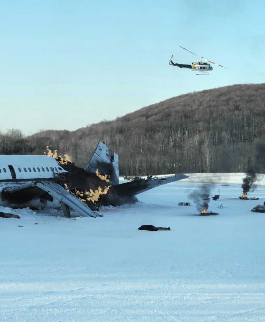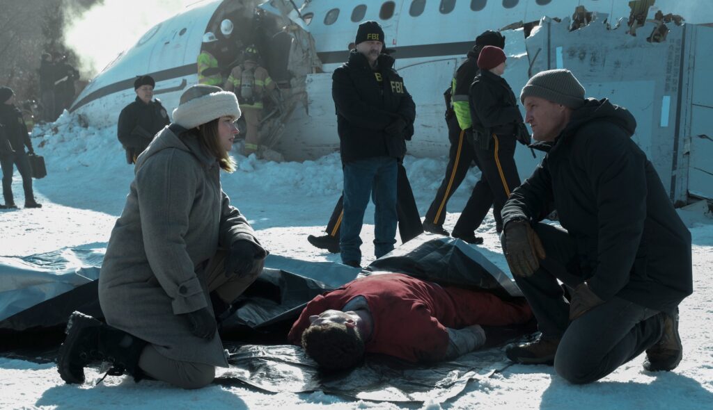 The crash itself is pure spectacle. It’s Con Air meets The Thing with a side of chaos. People are screaming, on fire, falling out of the sky — this isn’t a metaphor, it’s Tuesday in Alaska.