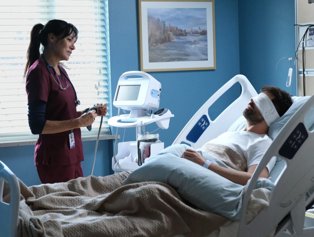 This is the part where I started talking to my TV again. “Just no. Put him back outside. Let nature do its job.” But no — she’s tending to him like it’s a science fair project while Luke’s lighting candles and queuing up The Scorpions.