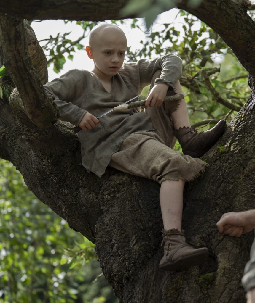 He’s in a world of make-believe at times, pretending to pass Dunk the sword and cheering his knight on, and it is the most adorable part of the whole episode.