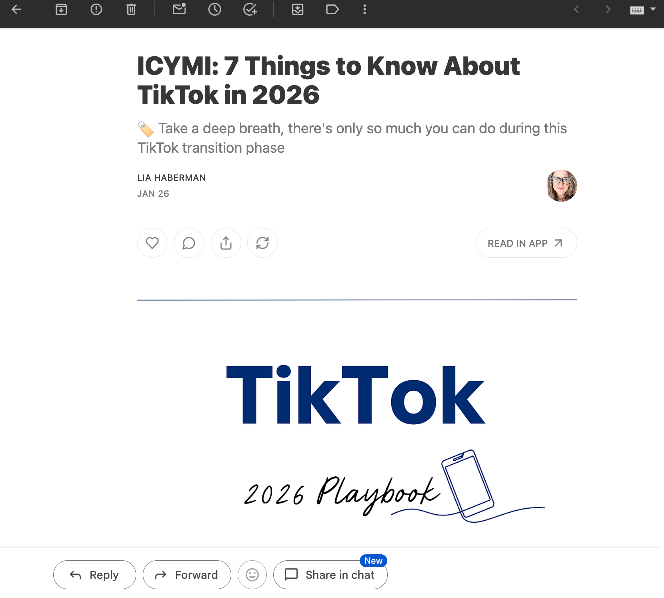 ICYMI is the newsletter I reference most when I’m writing for Buffer. If something happened on social media this week, Lia likely covered it — and she probably explained it better than the company’s own press release.